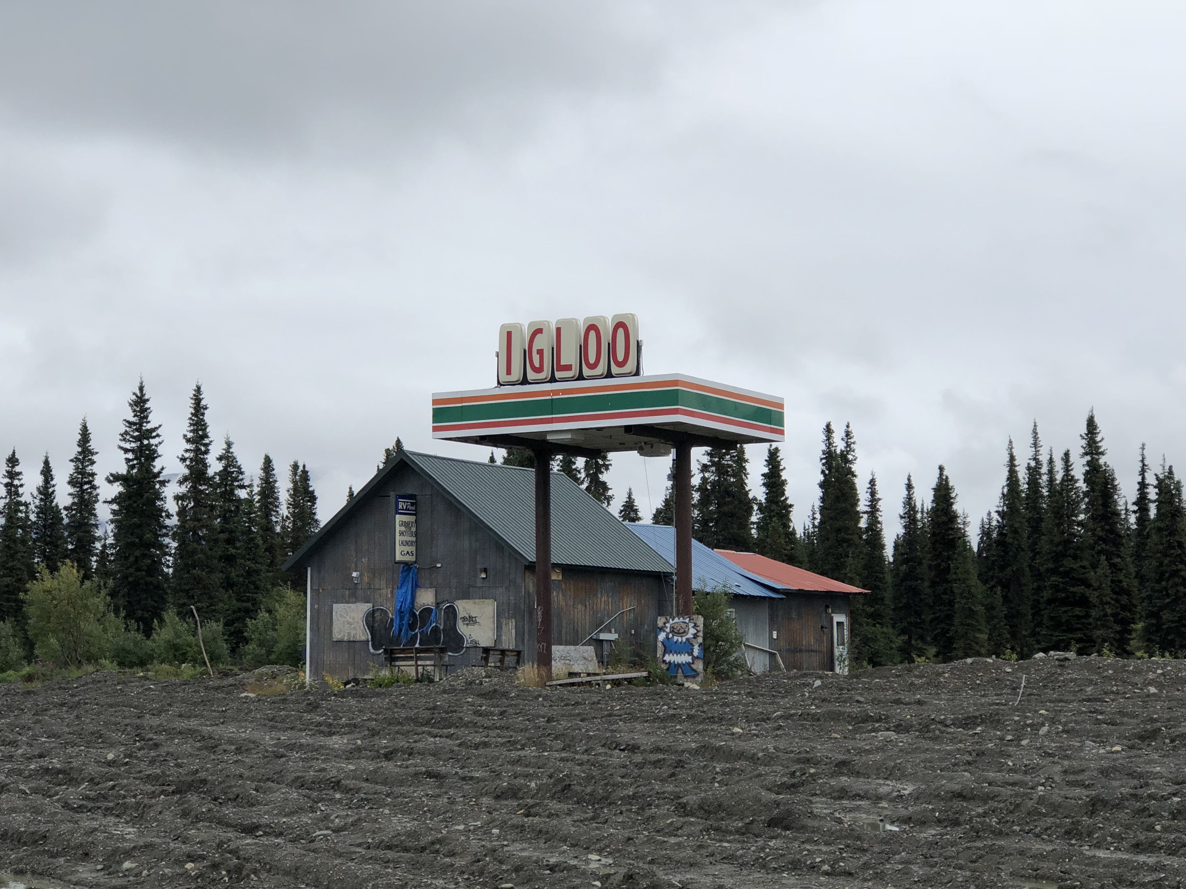 It was raining when I hit the road and clouds hovered around the mountains as the rain toggled from a sprinkle to a downpour over and over again. Once I got through Denali, the drive was flat and there wasn’t much to see. I talked with my cousin, Misty for a bit, and that helped break up the monotony.